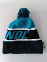 Теплая зимняя шапка черного и бирюзового цвета с логотипом ADDINOL и подходящим помпоном